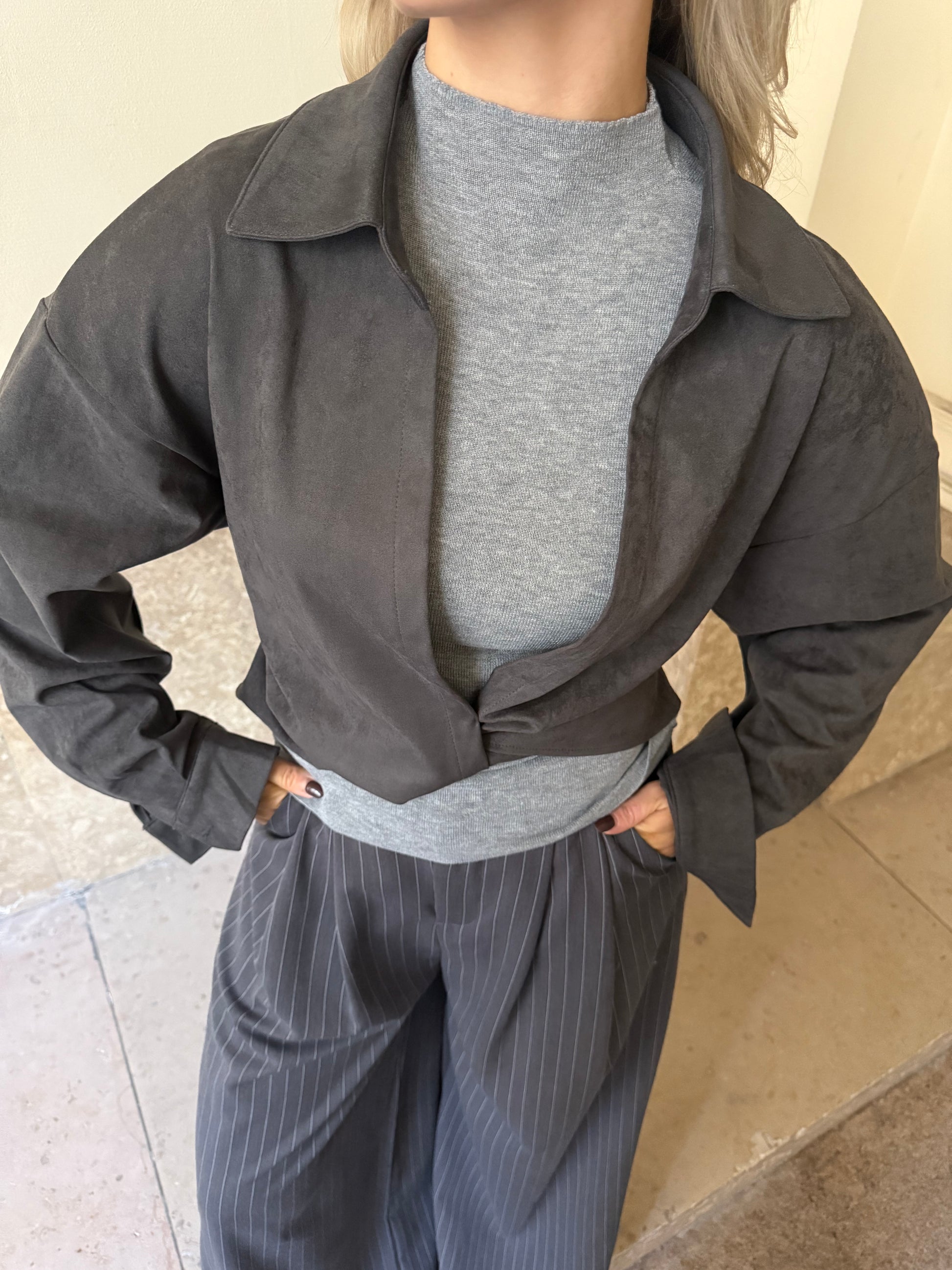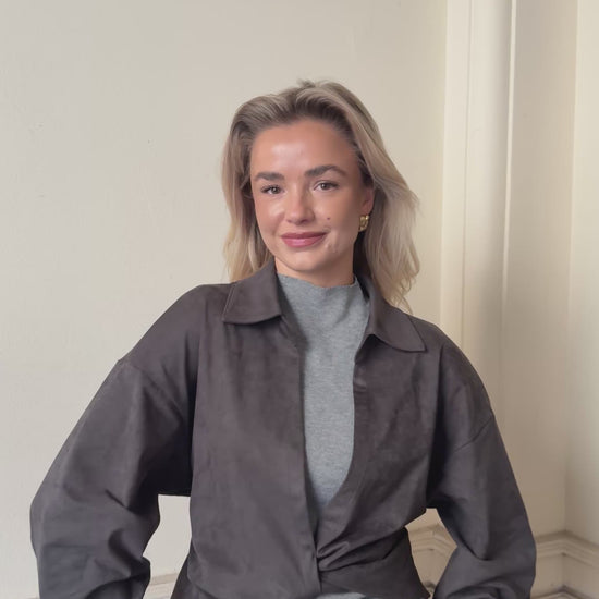 Deze grijze blouse met bijpassend grijs topje vormt de perfecte set voor elke gelegenheid. Beide items zijn los van elkaar te dragen, maar samen creëren ze een zachte, elegante look waar je je meteen zelfverzekerd in voelt.