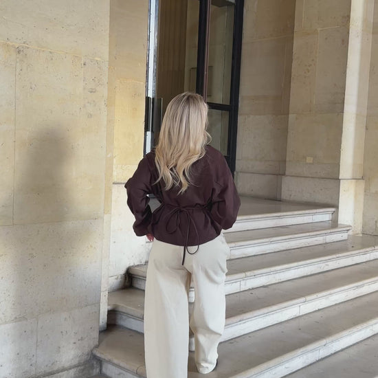 Elegante eenvoud in een set: deze bruine blouse met bijpassend topje is stijlvol, zacht en veelzijdig. Beide items zijn los van elkaar te dragen, maar samen creëren ze een warme, chique look die je moeiteloos kunt combineren.