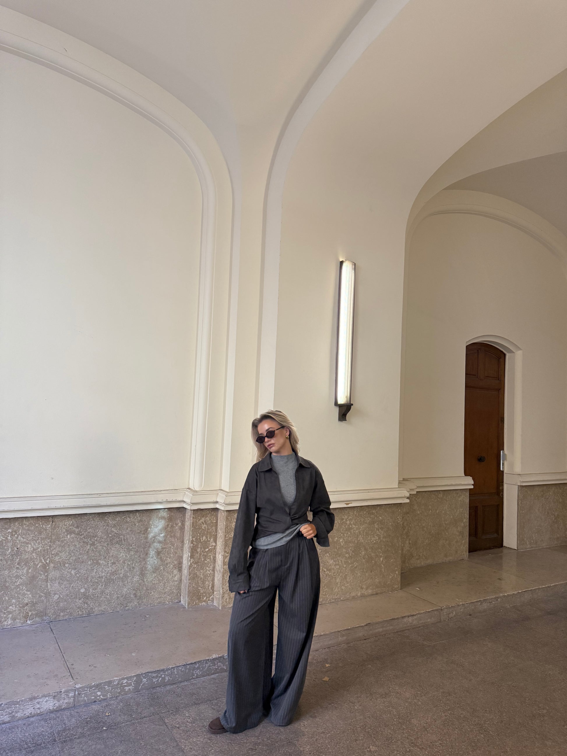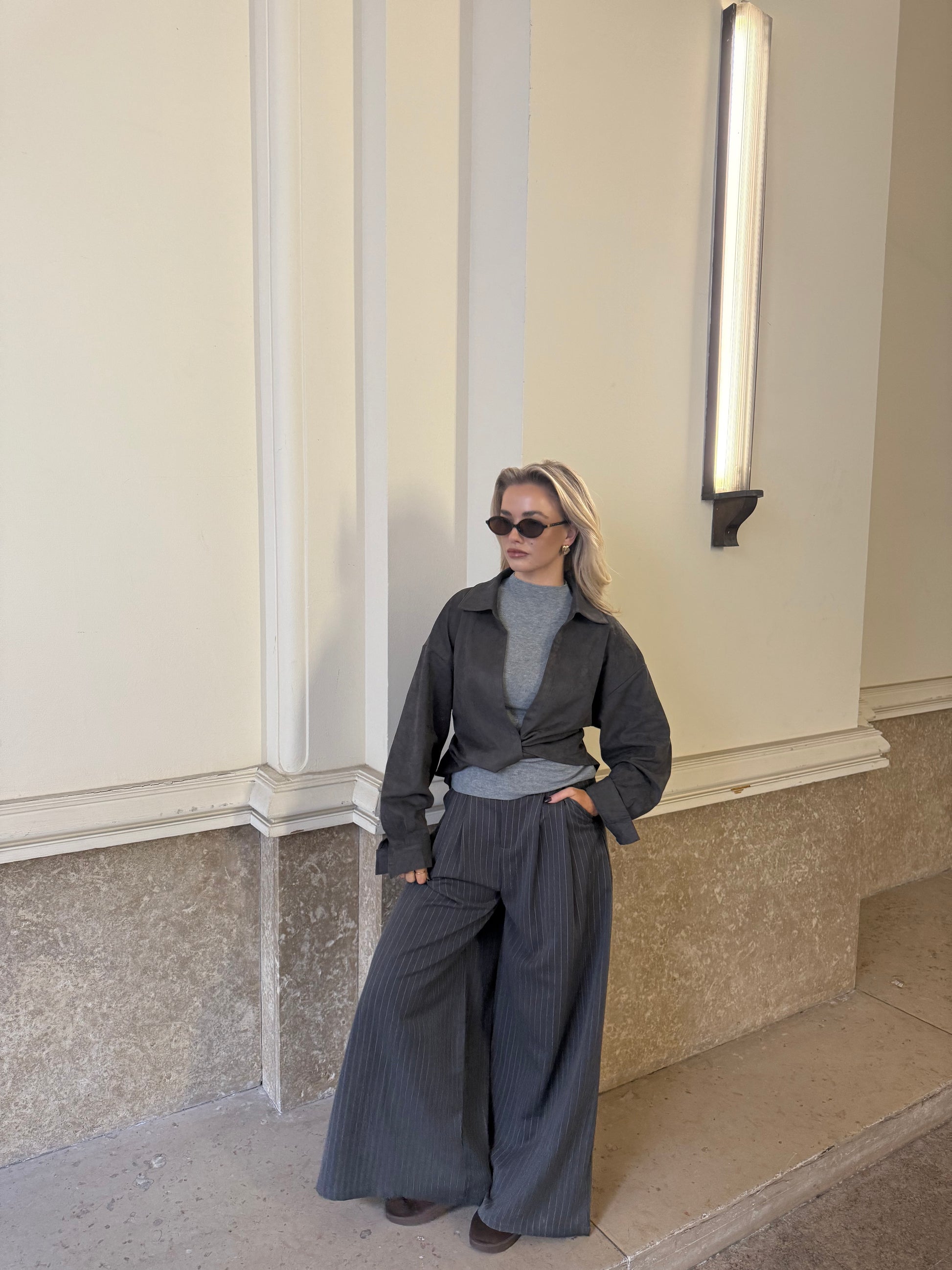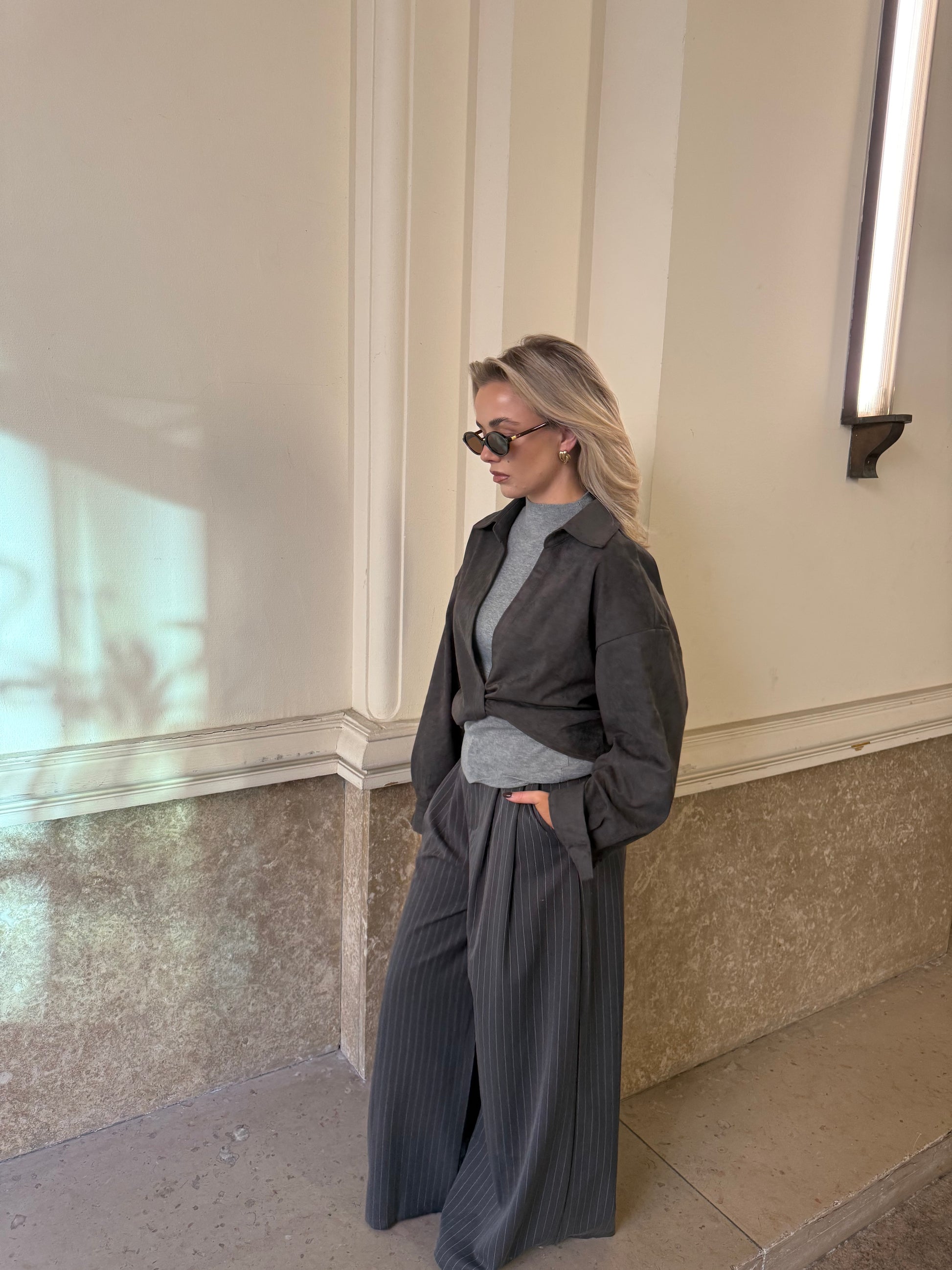 Een nette grijze pantalon met een fijn streep detail. Gemaakt van een kwalitatieve stof die mooi valt en prettig draagt. Een tijdloos model dat je eenvoudig combineert voor zowel werk als dagelijks gebruik.