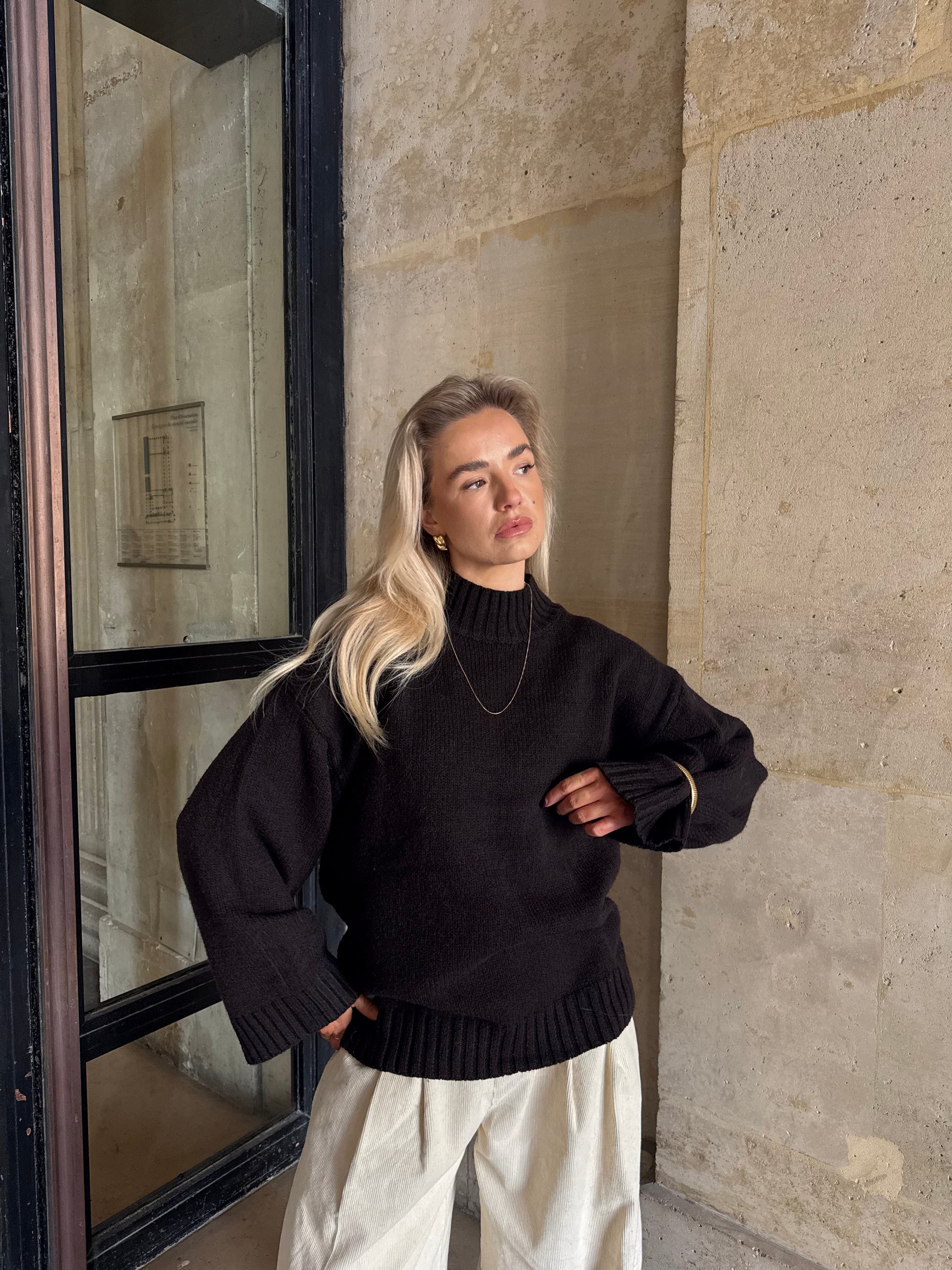 Deze bruine trui heeft een tijdloze uitstraling, afgewerkt met een klein detail op zowel de mouw als de kraag. Ook in het créme verkrijgbaar!