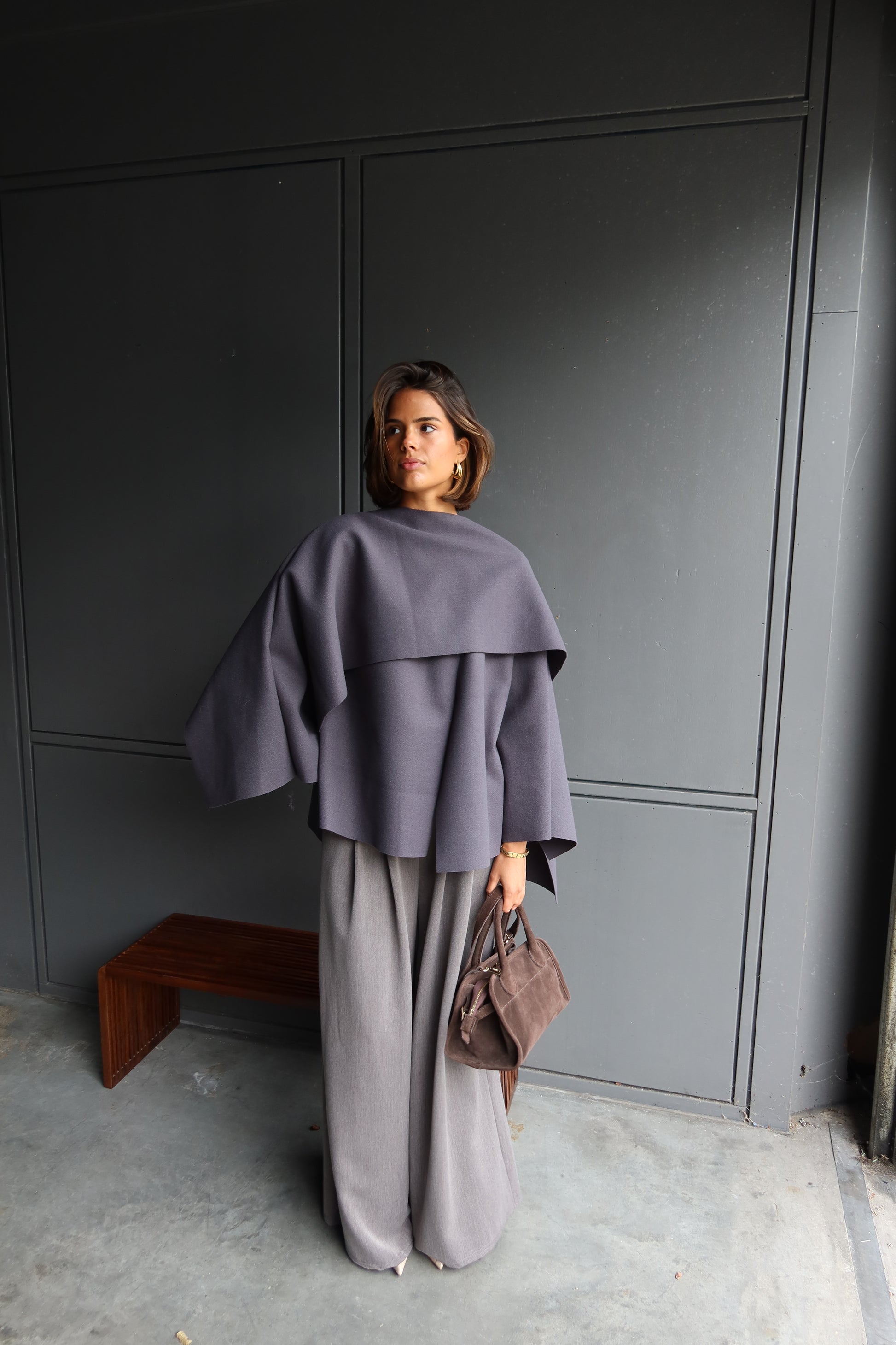 Deze unieke cape/poncho voelt als je favoriete trui en sjaal in een. Een statement piece dat elke outfit direct een cozy upgrade geeft. Verkrijgbaar in crème, taupe en blauw, en perfect in een maat die heerlijk nonchalant valt. Draag dit item over een basic top of blouse voor een look die zowel relaxed als chique oogt.