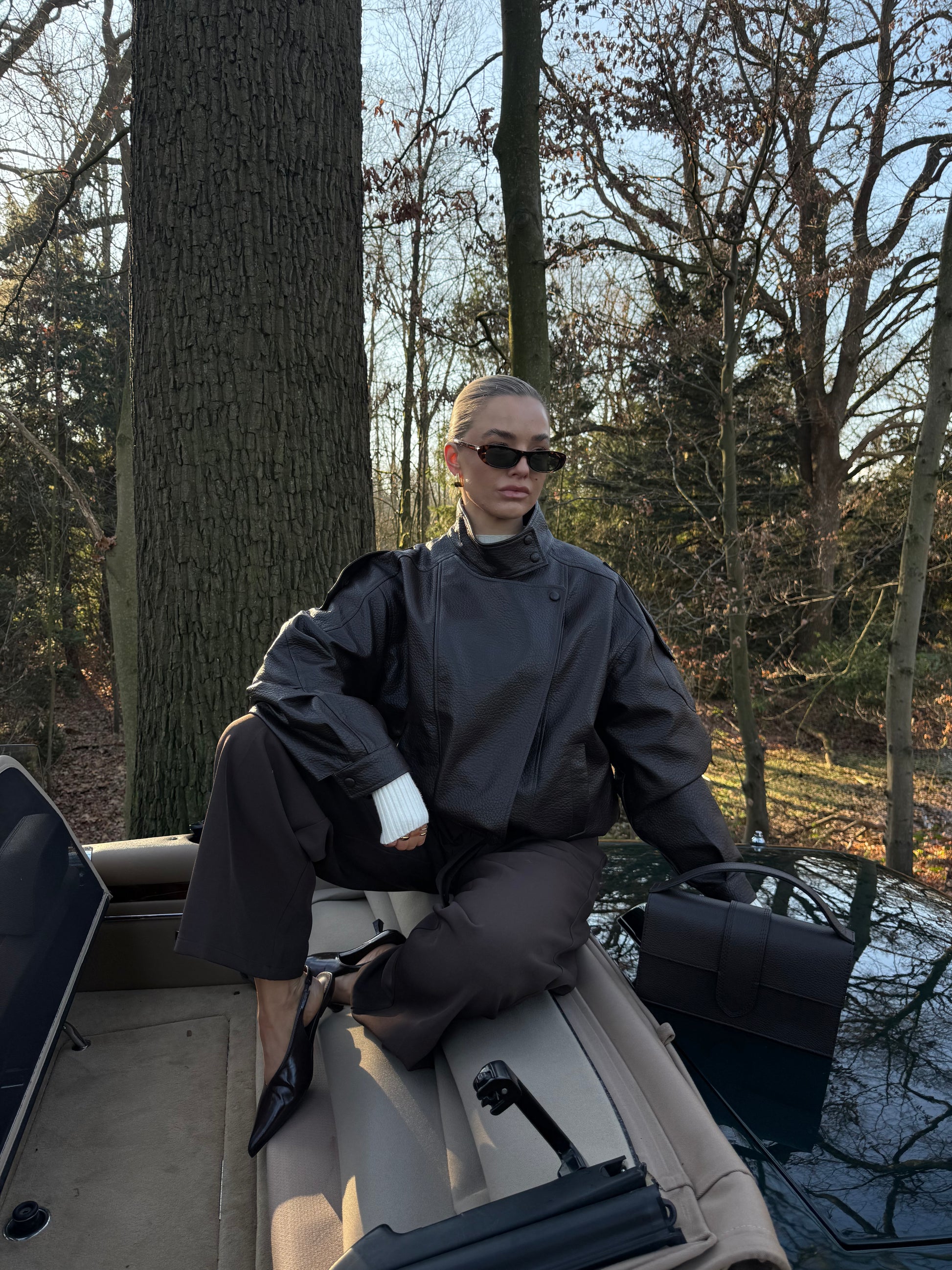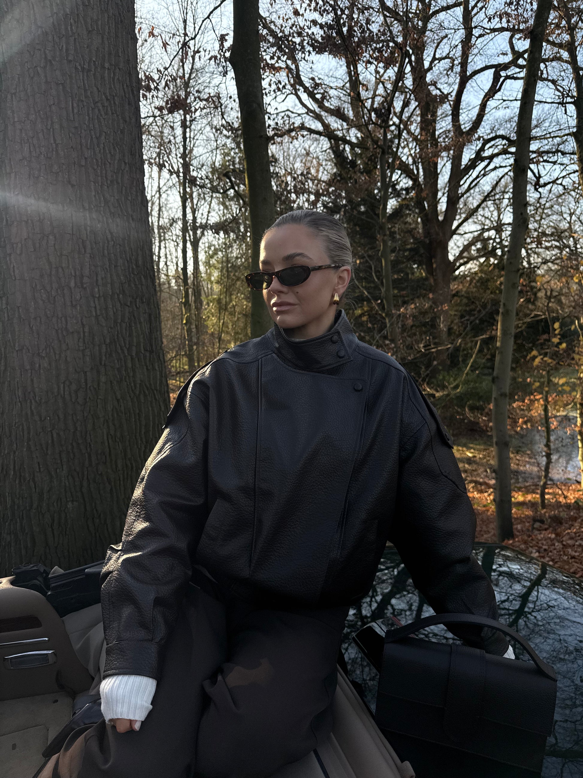 Deze PU leren jas heeft een krachtige en verfijnde uitstraling. De kraag en de zorgvuldig uitgewerkte details geven het ontwerp een chique touch, terwijl het materiaal zorgt voor een moderne look. Een veelzijdig item dat moeiteloos te combineren is en elke outfit net dat beetje extra geeft.