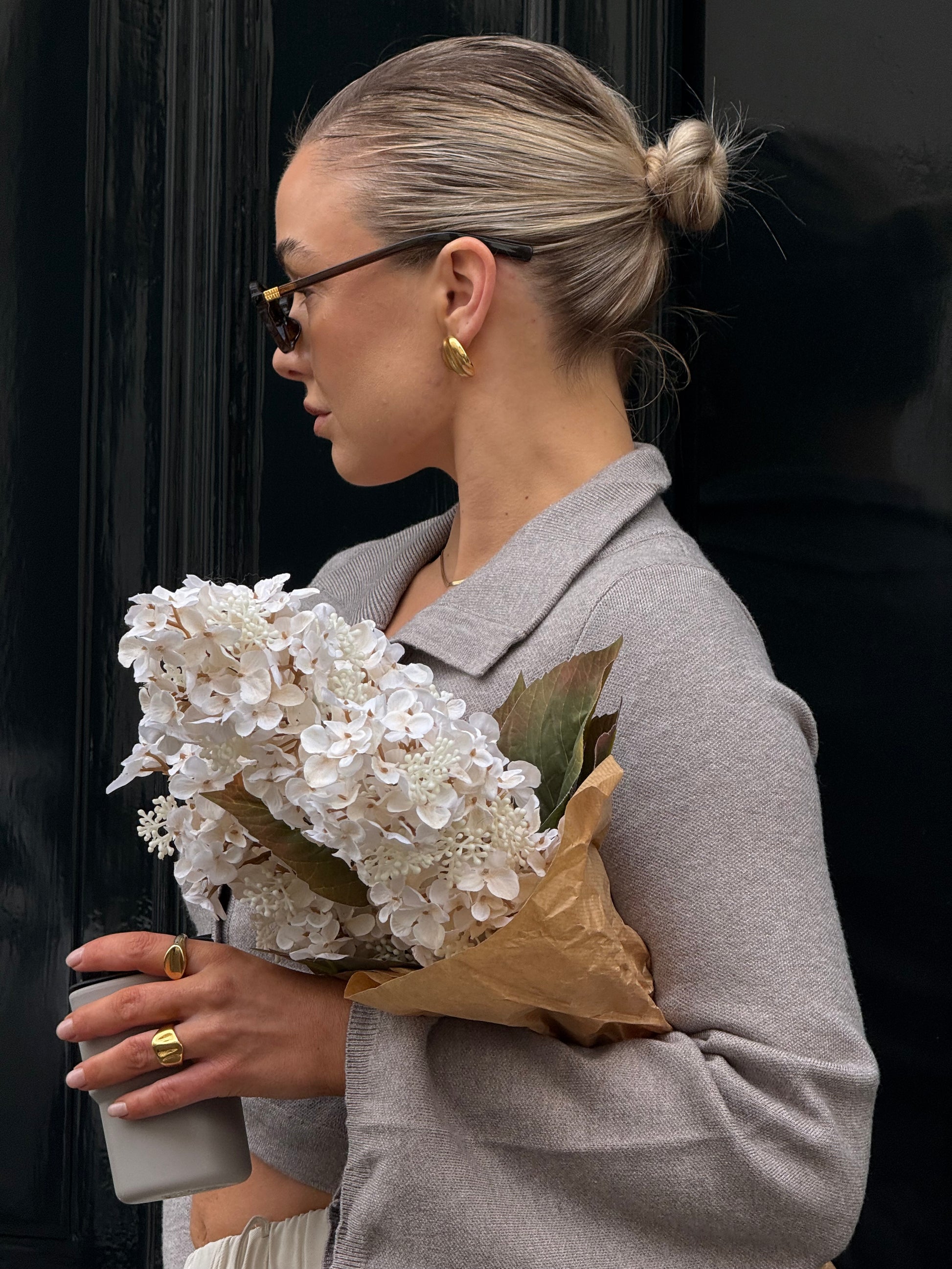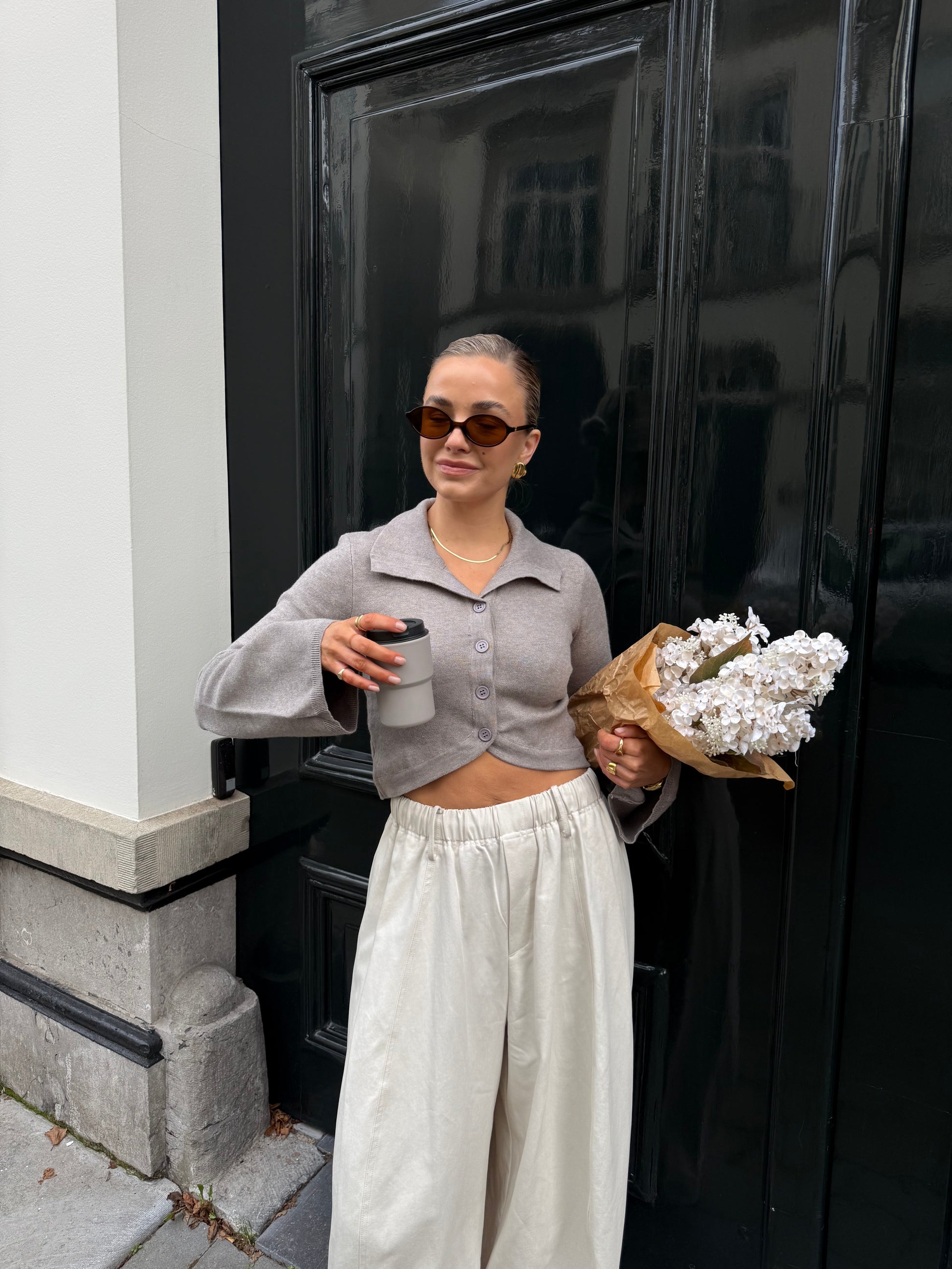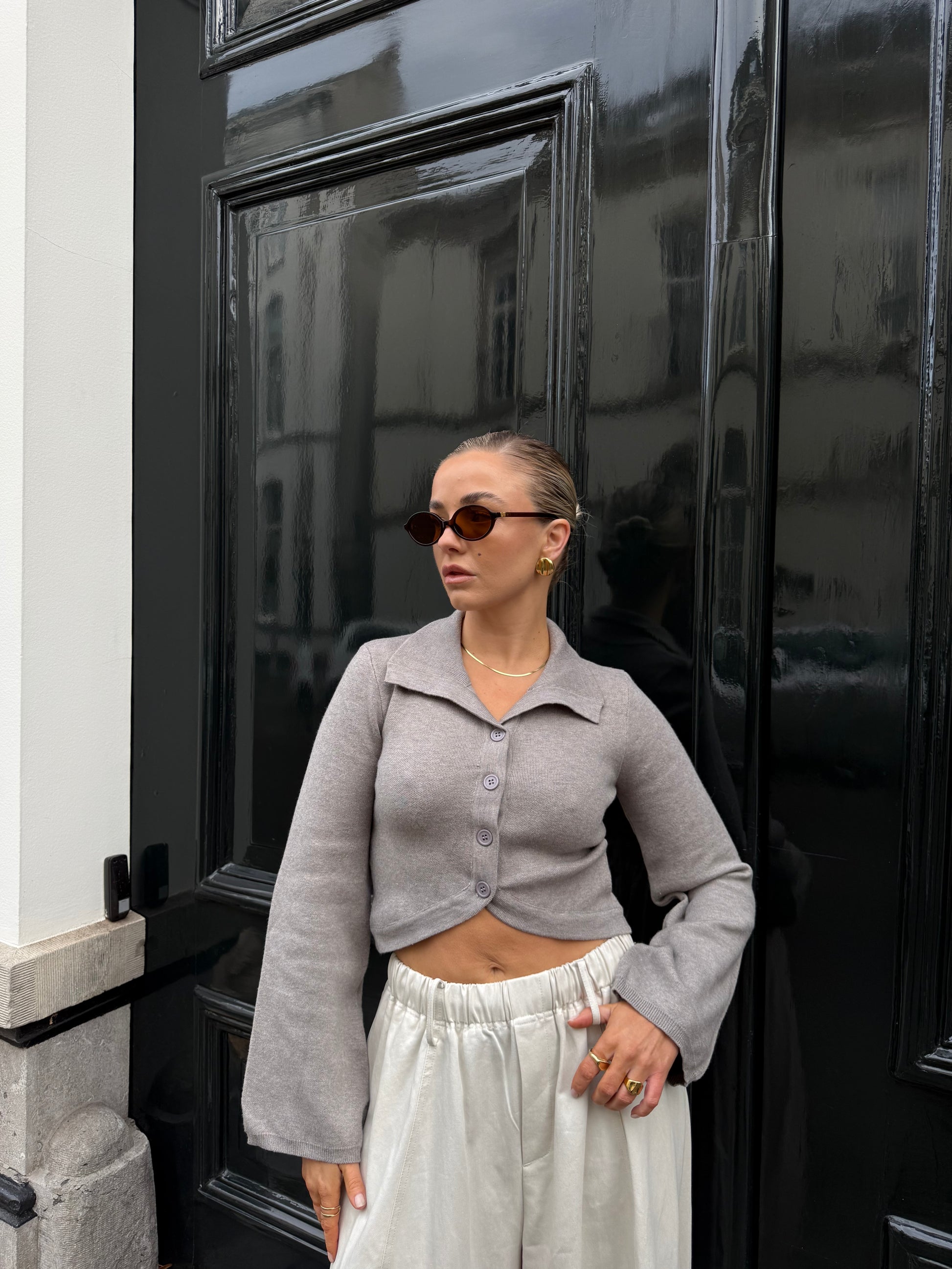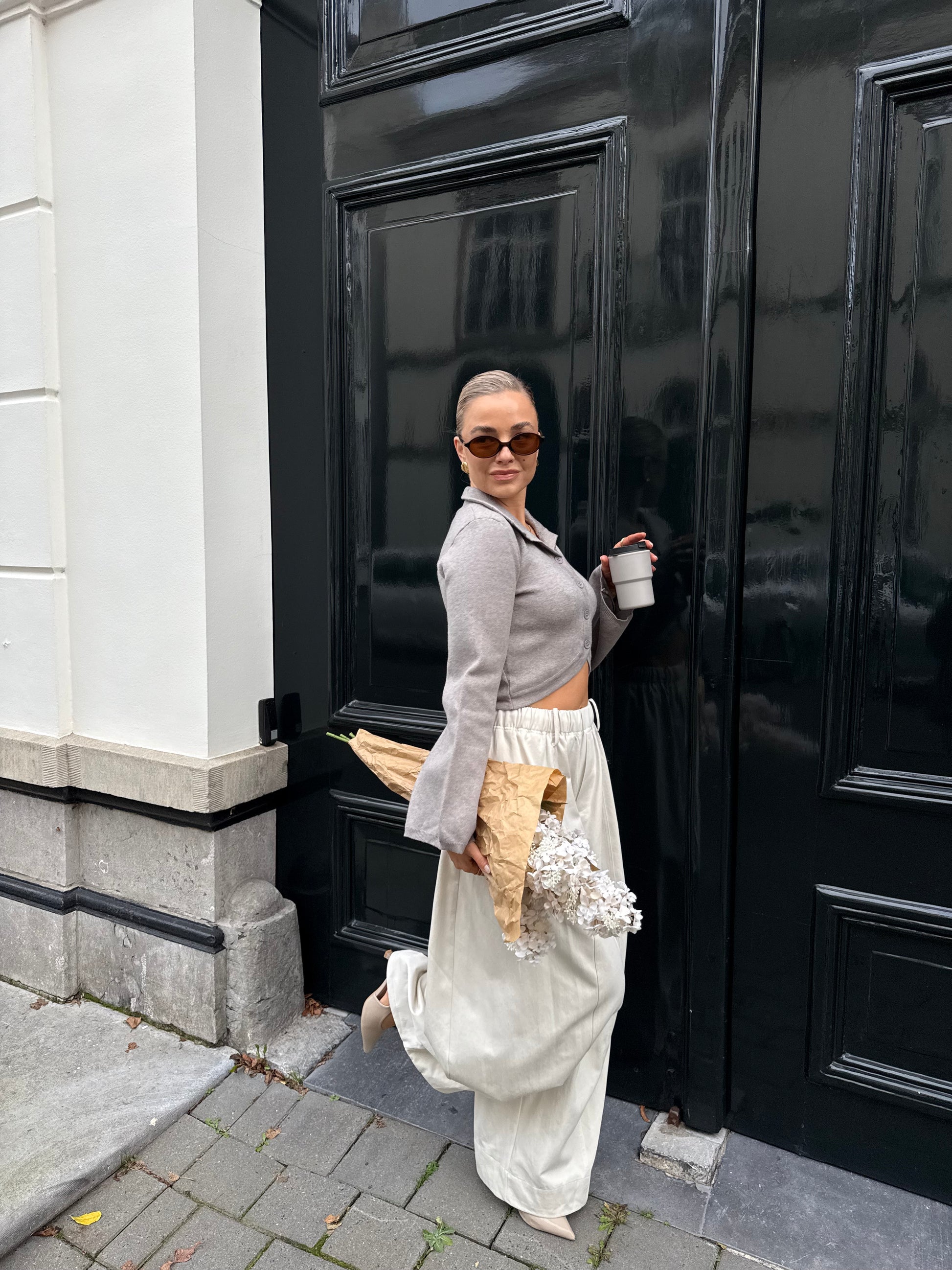 Deze grijze top heeft een moderne en verfijnde uitstraling. De uitlopende mouwen geven het item een speels en elegant detail. De top valt aan de kleine kant, waardoor we adviseren je eigen maat goed te checken voor de gewenste fit.