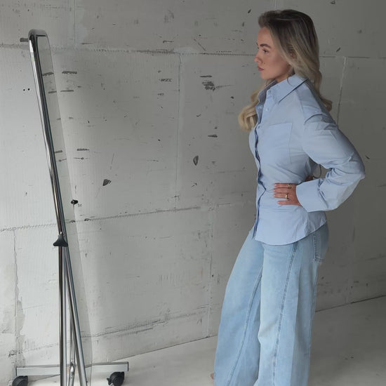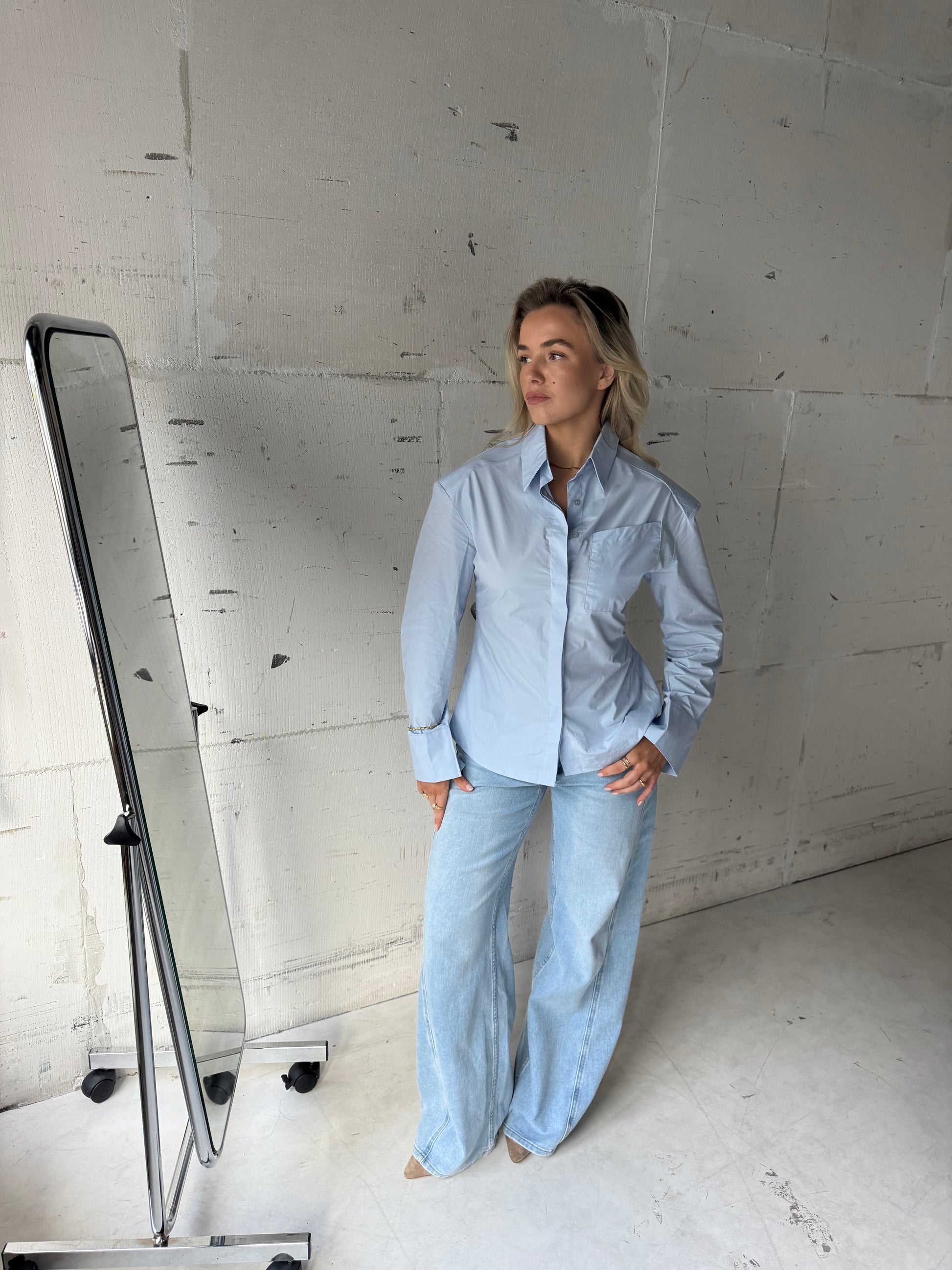 Blouse blauw met schoudervulling