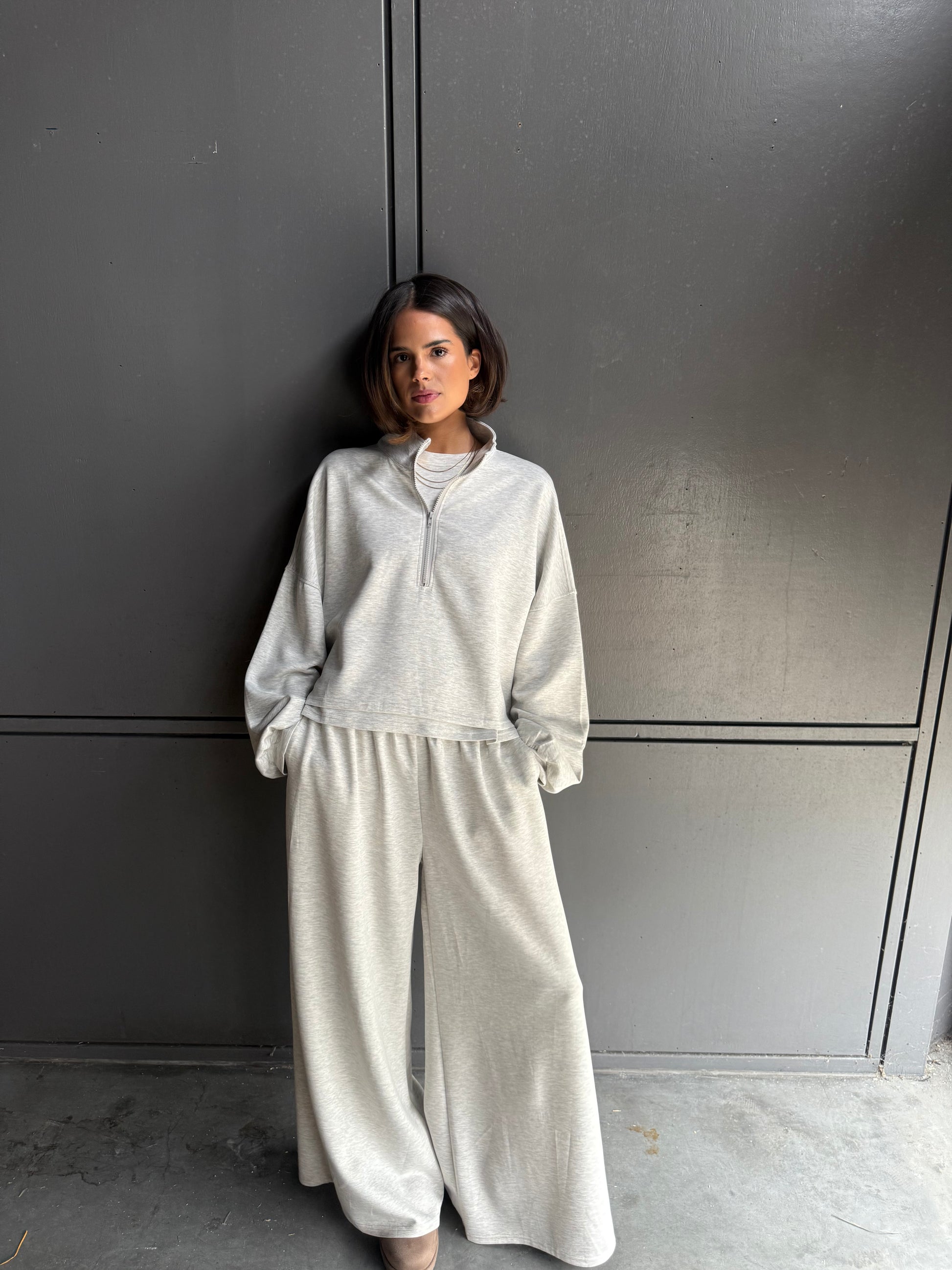 Mega zachte grijze broek met een comfortabele fit. Perfect te combineren met het bijpassende shirt en vest voor een complete look.