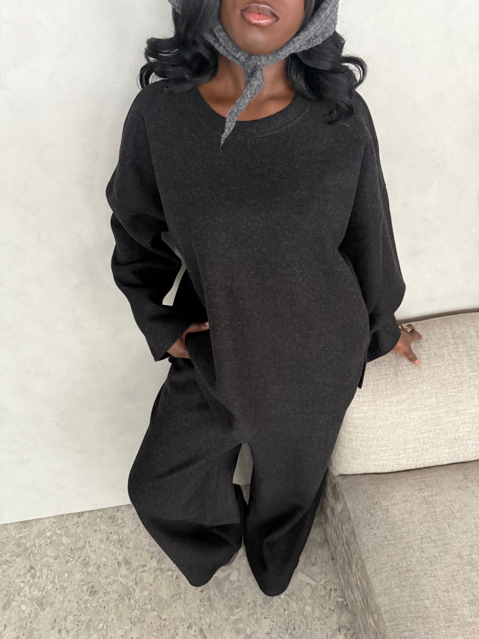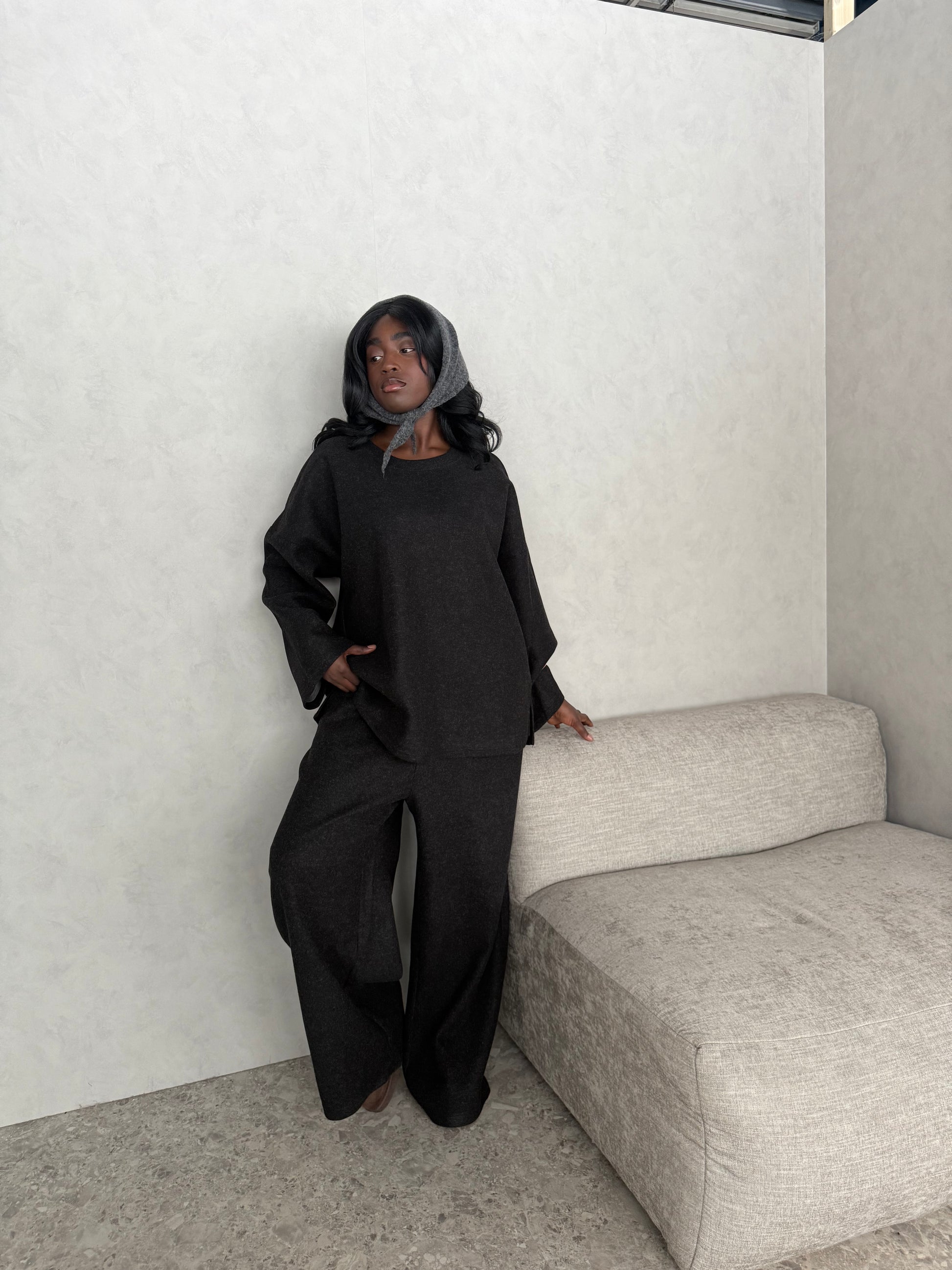 Deze grijze broek is mega comfy. De zachte, warme stof maakt dit item perfect voor koude dagen. Draag ‘m los of combineer met de oversized trui voor een complete, cozy set.