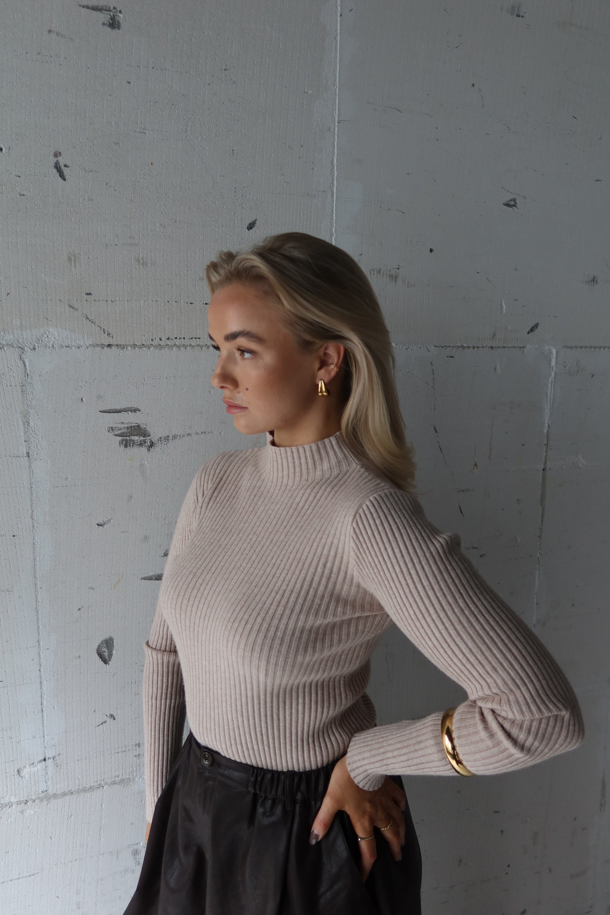 Een zachte beige coltrui met een tijdloze uitstraling – warm, elegant en moeiteloos te combineren.
