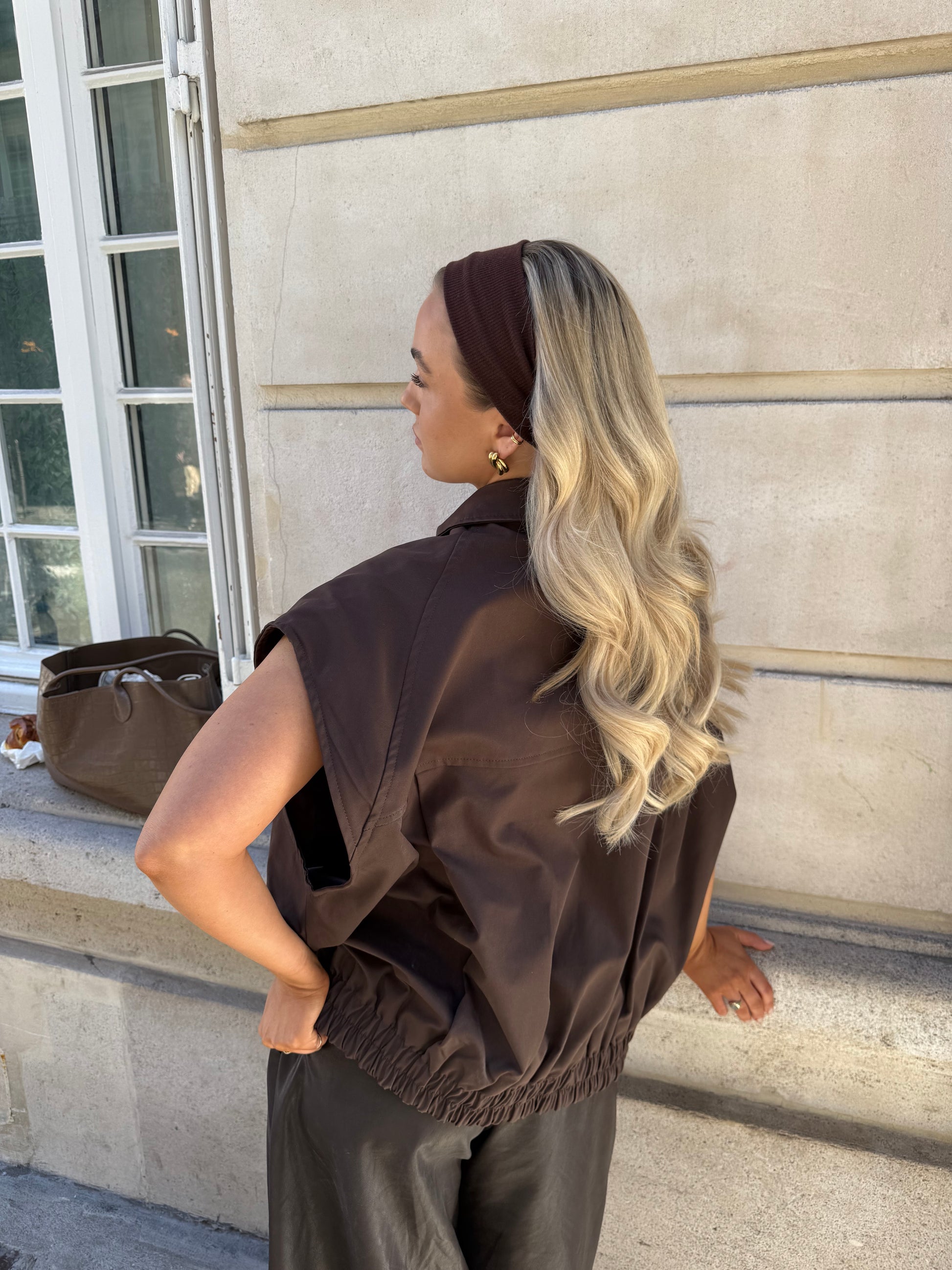 Een stijlvol bruin gilet dat je outfit compleet maakt. Perfect voor een effortless, elegante look.