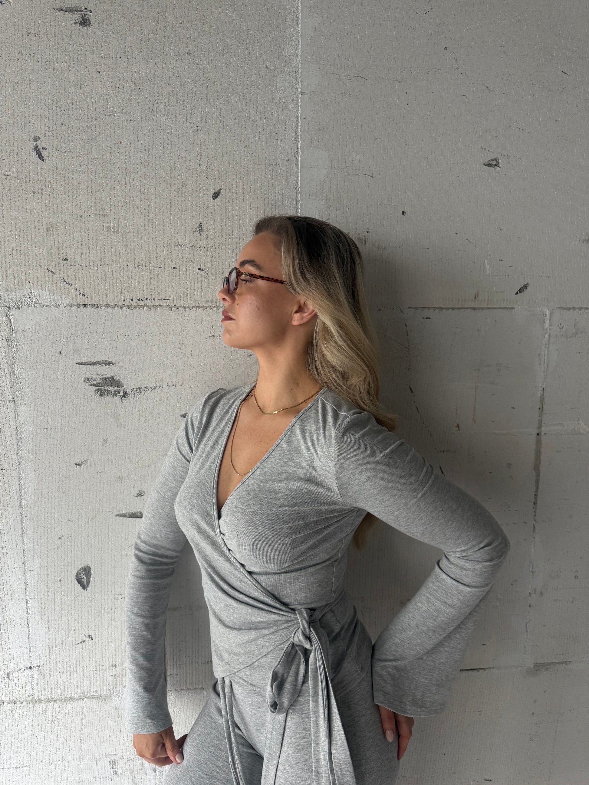 Comfort en stijl komen perfect samen in dit heerlijk zachte omslag vest. De subtiele grijze tint geeft een rustige, minimalistische uitstraling, terwijl de soepele stof zorgt voor een luxe en comfortabele feel.