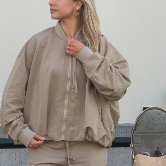 Warm camel jack met een mooie fit en luxe uitstraling. Draag ’m casual of juist wat chiquer.
