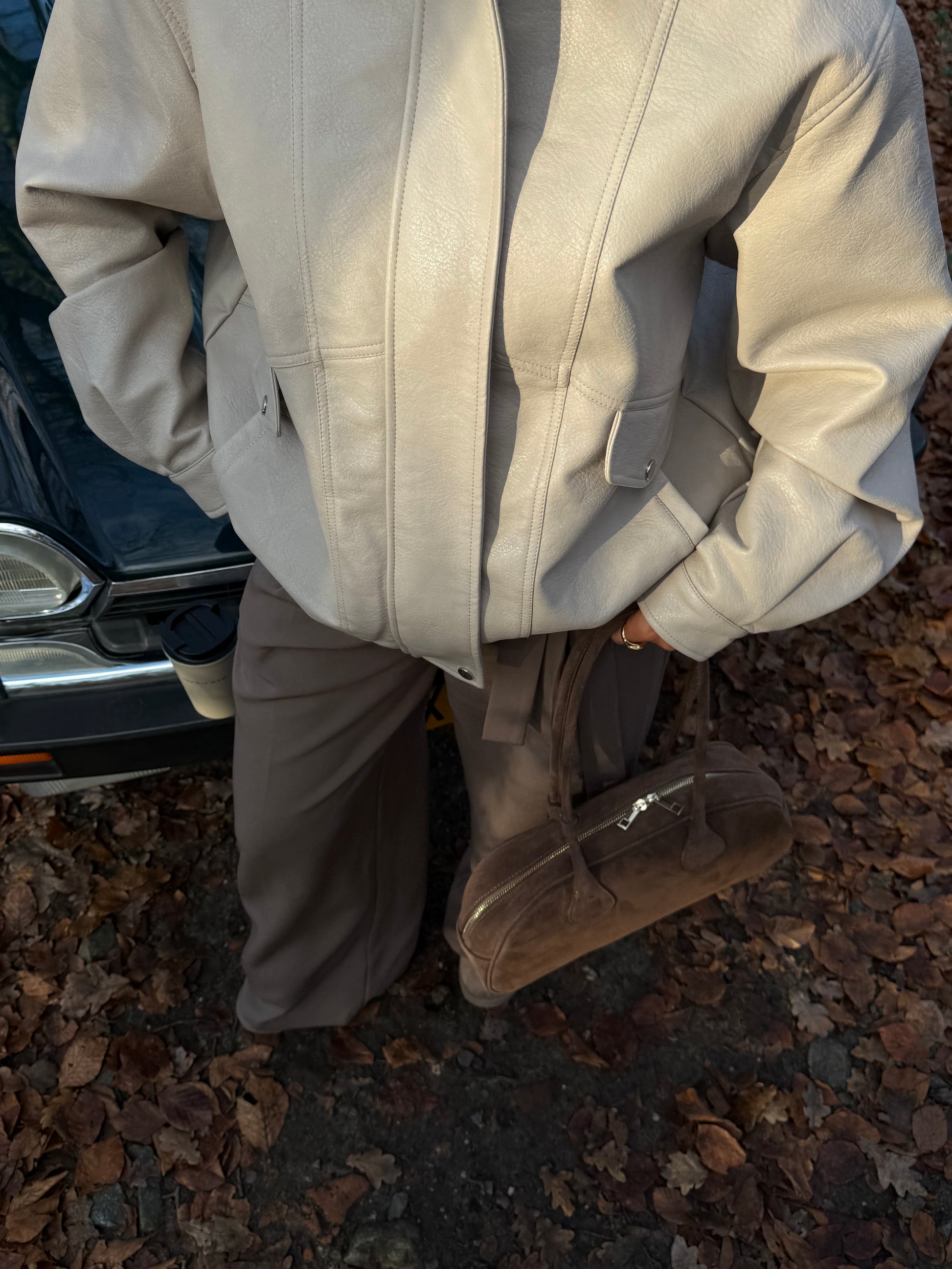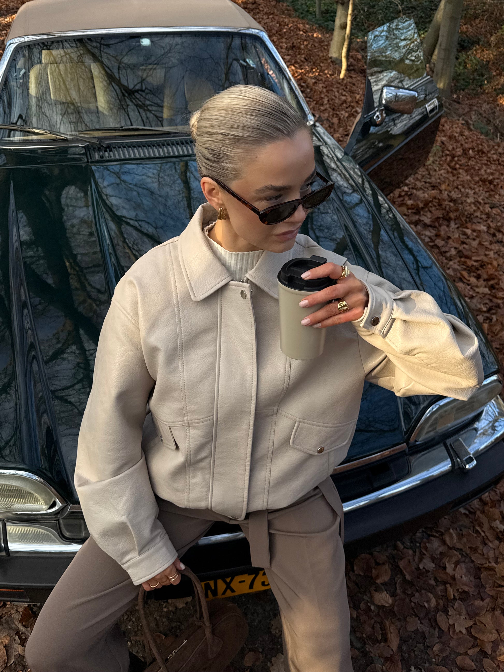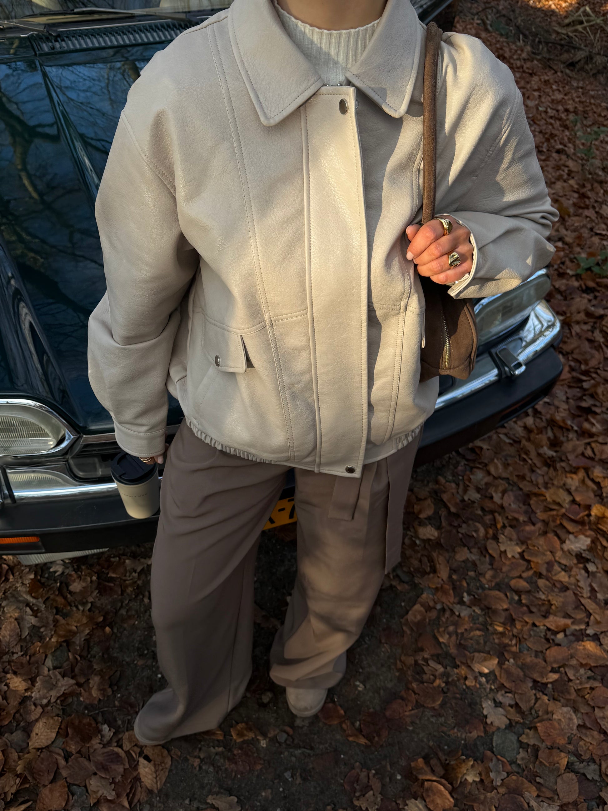 Deze PU leren jas heeft een krachtige en verfijnde uitstraling. De kraag en de zorgvuldig uitgewerkte details geven het ontwerp een chique touch, terwijl het materiaal zorgt voor een moderne look. Een veelzijdig item dat moeiteloos te combineren is en elke outfit net dat beetje extra geeft.
