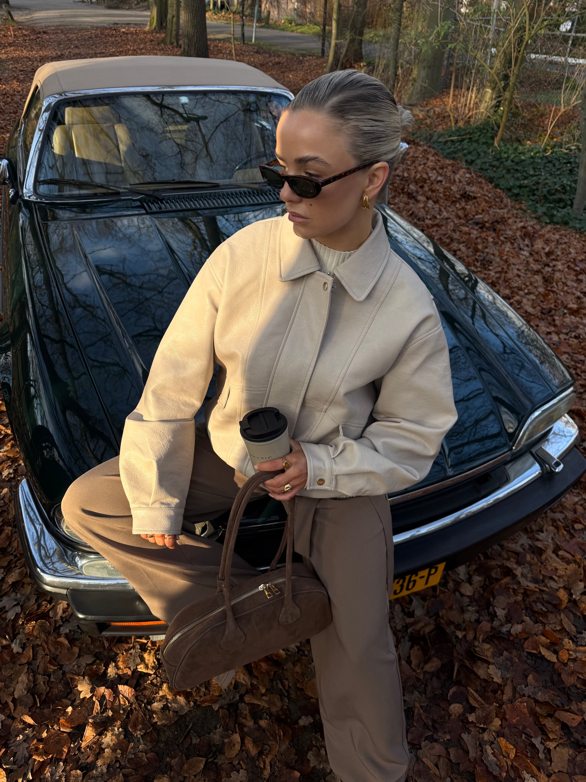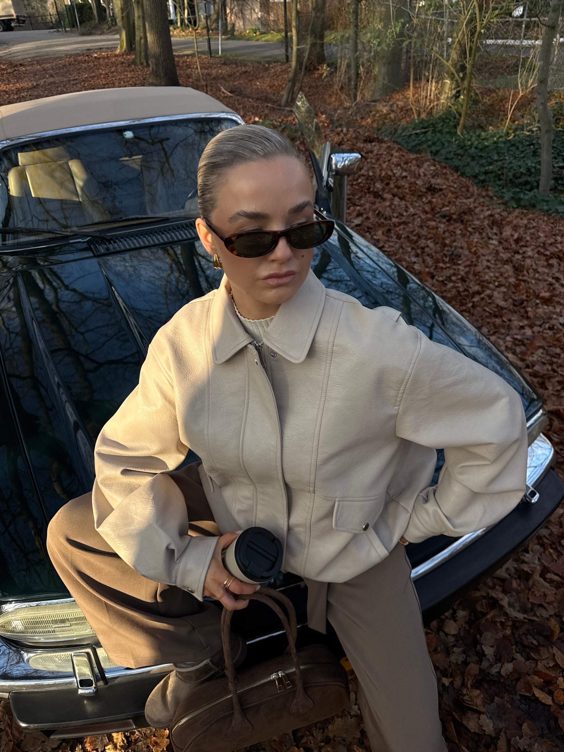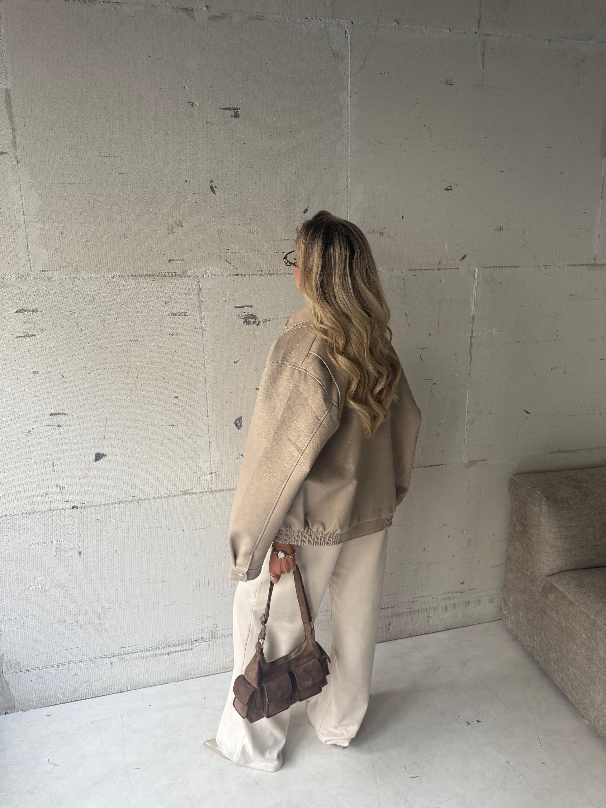 Deze PU leren jas heeft een krachtige en verfijnde uitstraling. De kraag en de zorgvuldig uitgewerkte details geven het ontwerp een chique touch, terwijl het materiaal zorgt voor een moderne look. Een veelzijdig item dat moeiteloos te combineren is en elke outfit net dat beetje extra geeft.