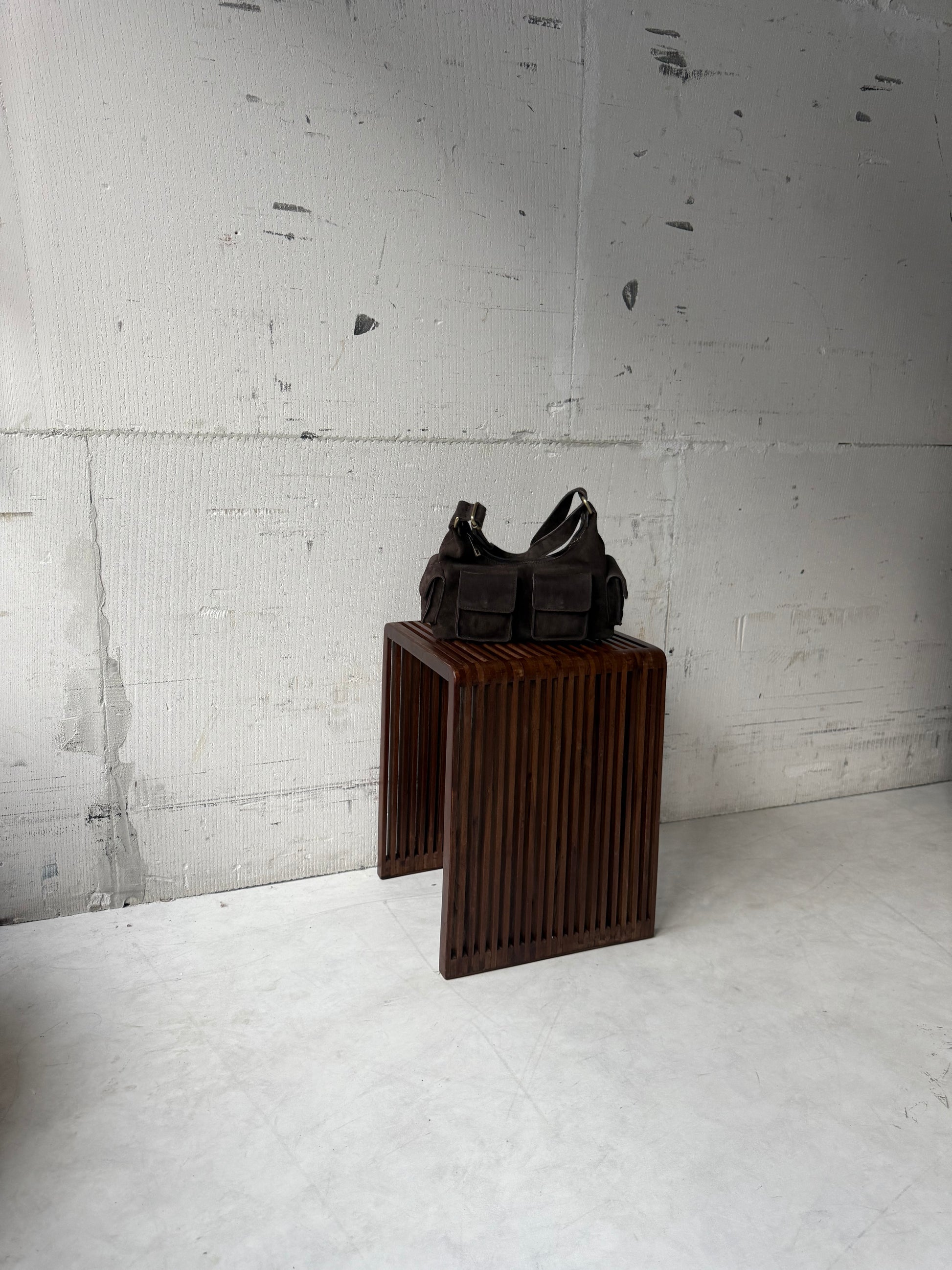 Deze prachtige bruine suede tas heeft veel details die de tas tot een echte eye catcher maken!