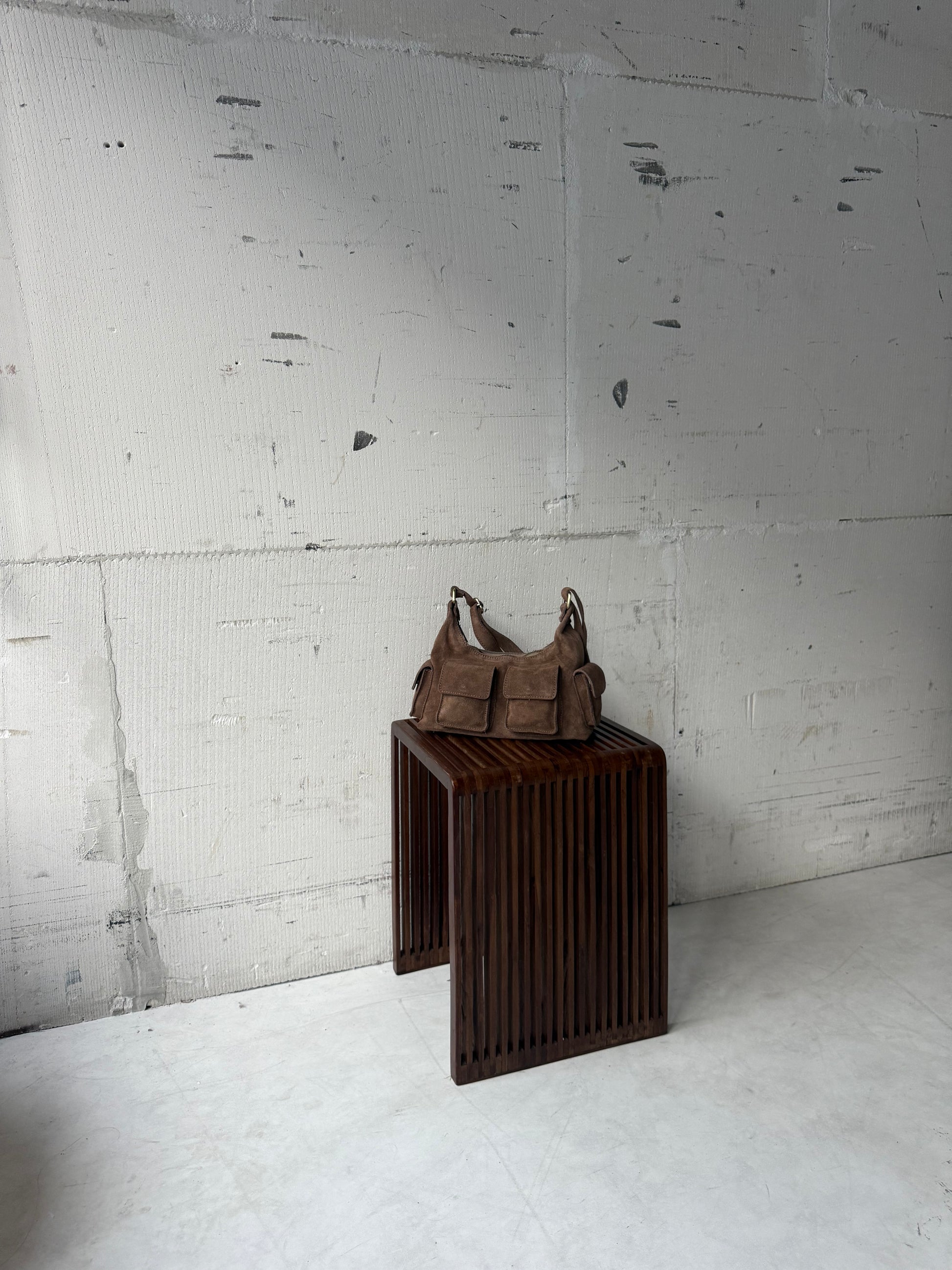 Tas taupe suede met details