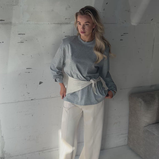 Een tijdloos item met een moderne twist. Dit lange grijze shirt krijgt dankzij de subtiele schoudervulling een stijlvolle en verfijnde uitstraling. Makkelijk te combineren en perfect voor een moeiteloos chique look.
