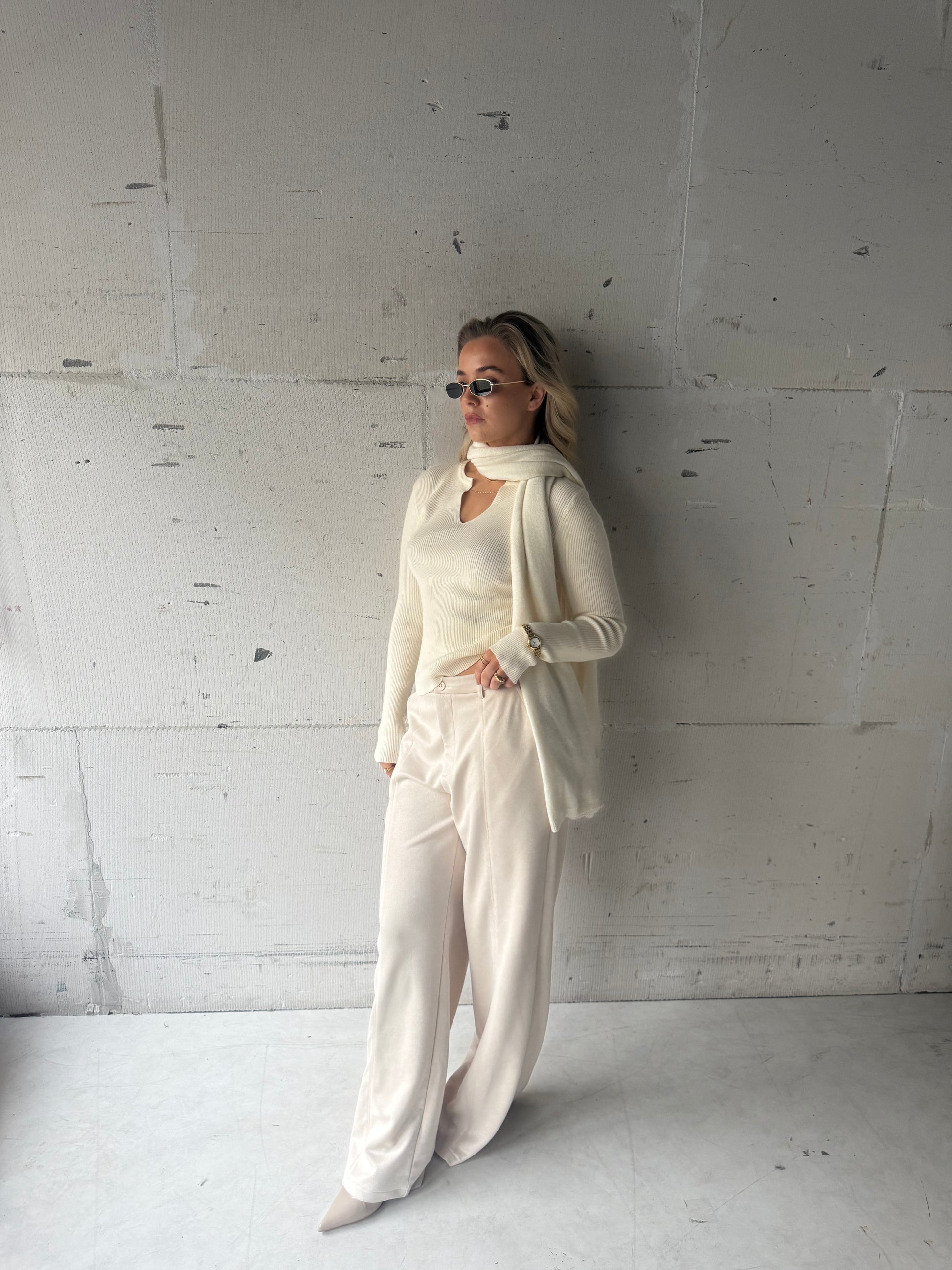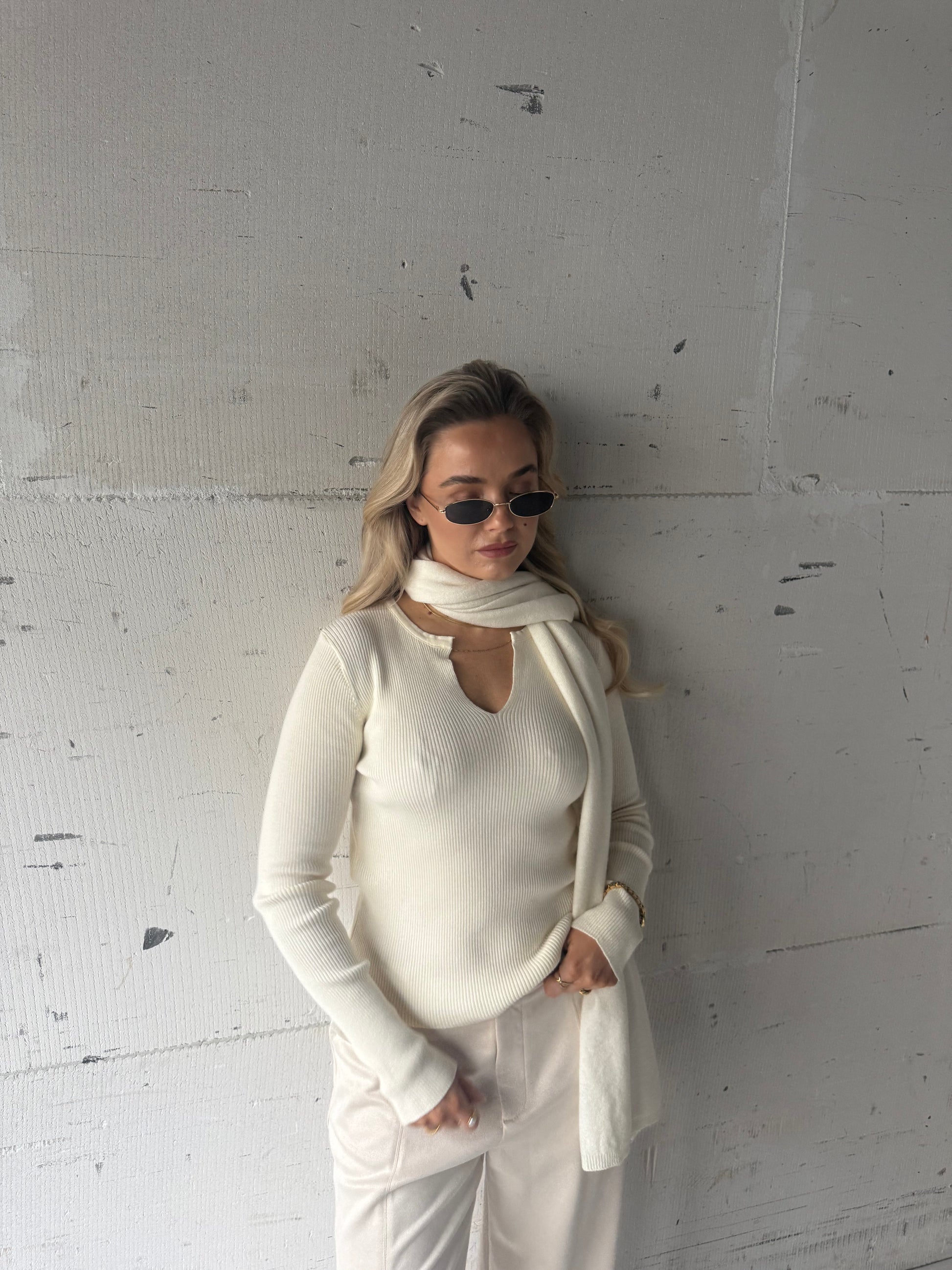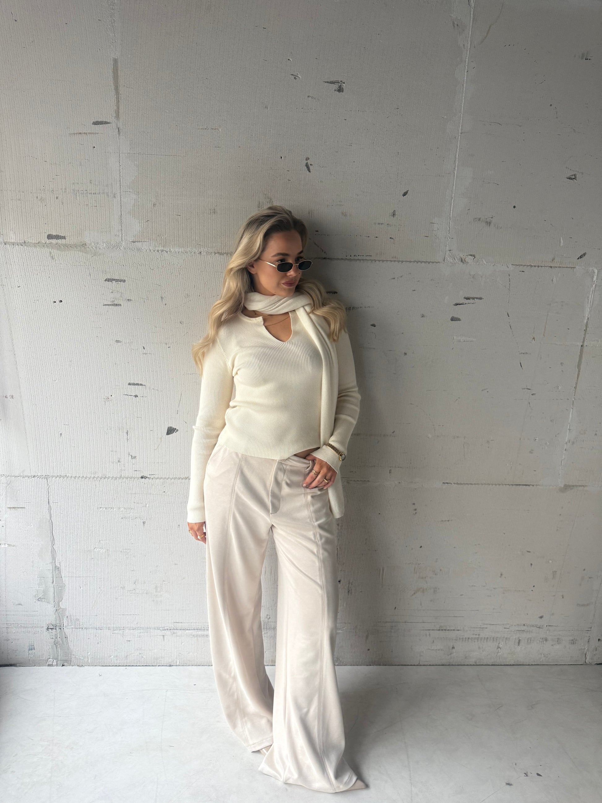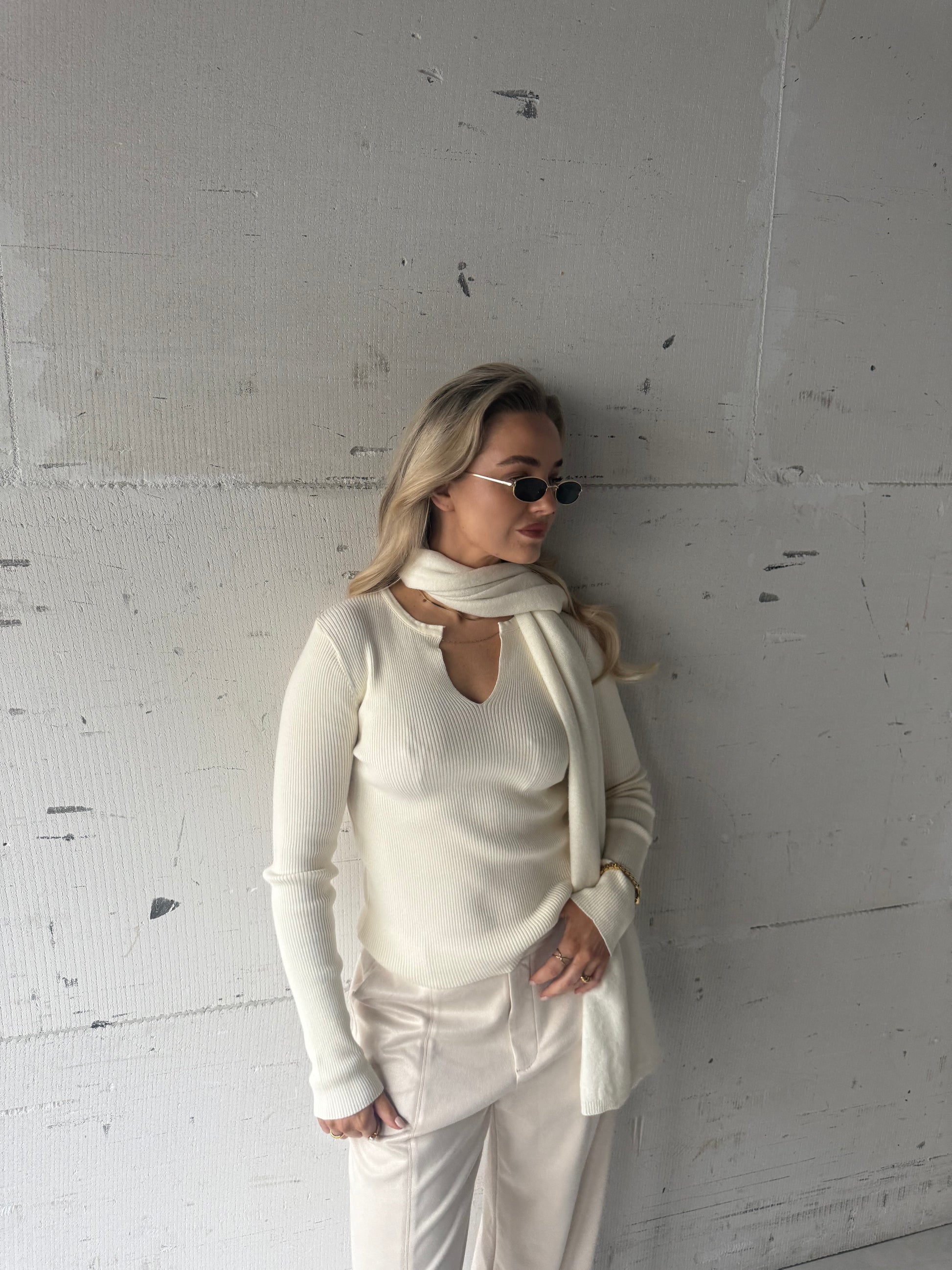 Top v hals rib crème