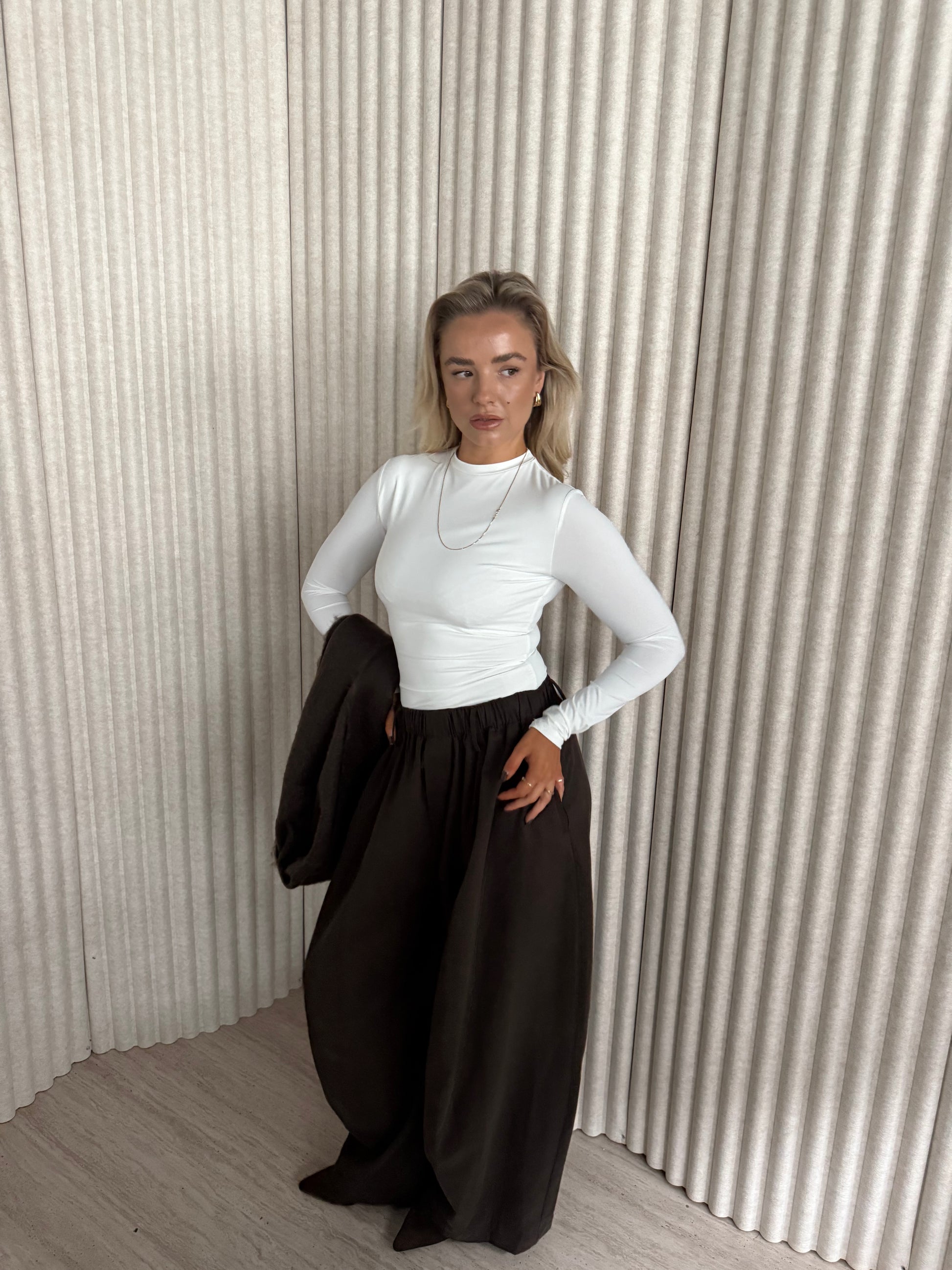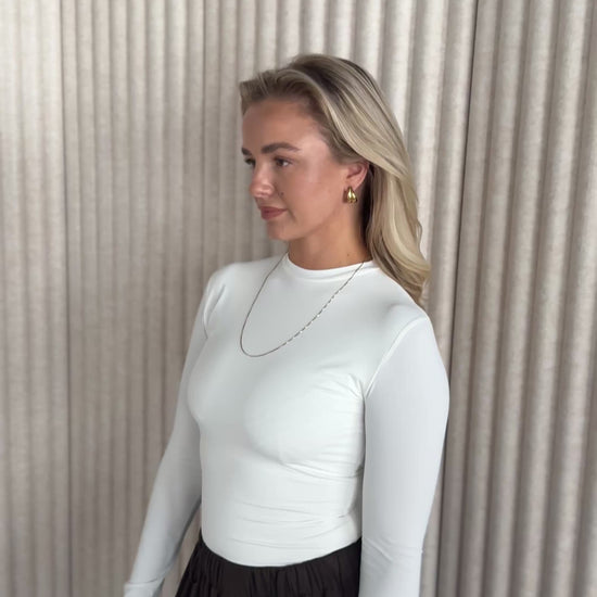 Een elegante top met een strakke, flatterende pasvorm. De frisse witte tint zorgt voor een tijdloze en verfijnde uitstraling. Ideaal als basisstuk voor een stijlvolle, minimalistische look.