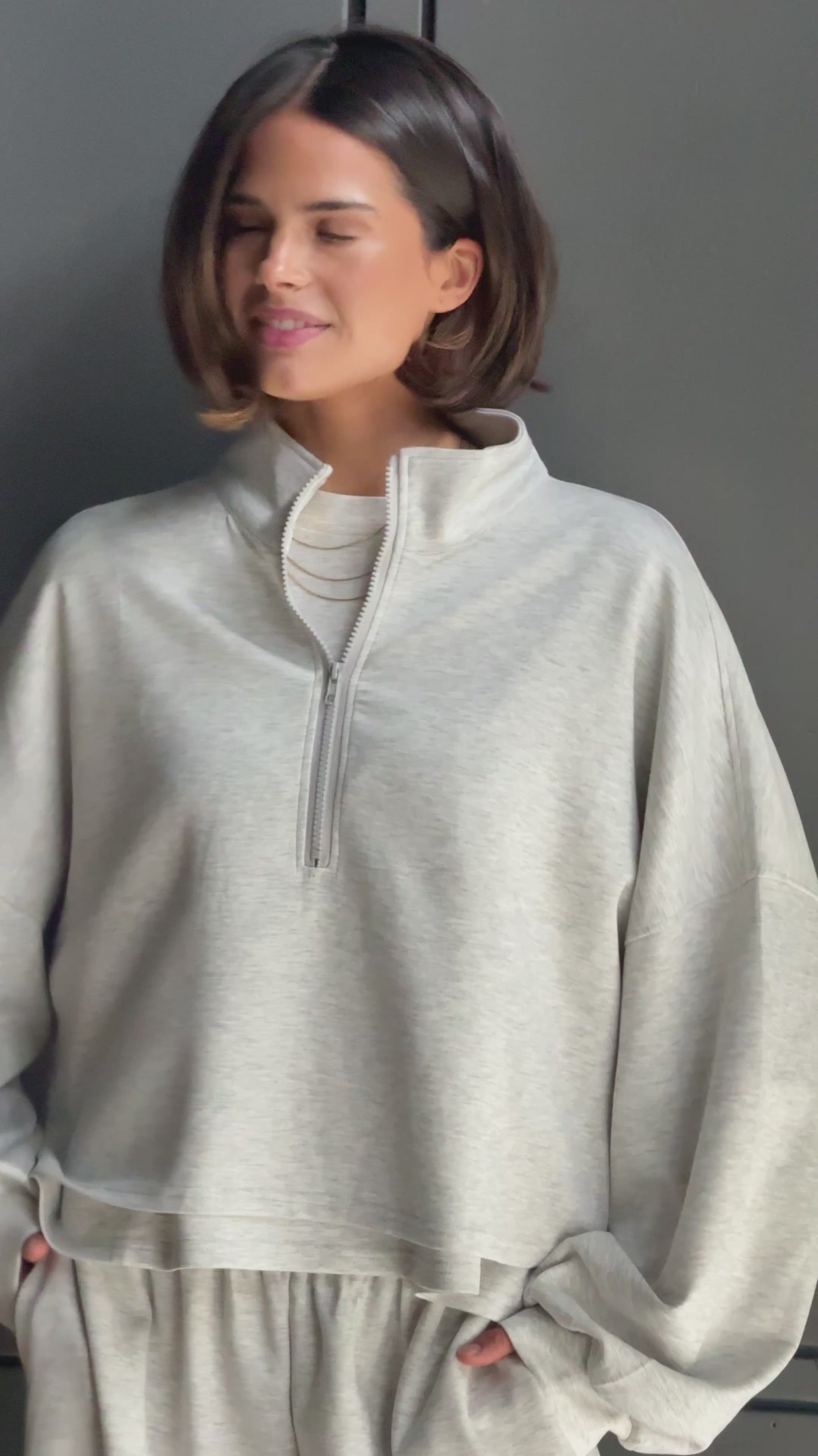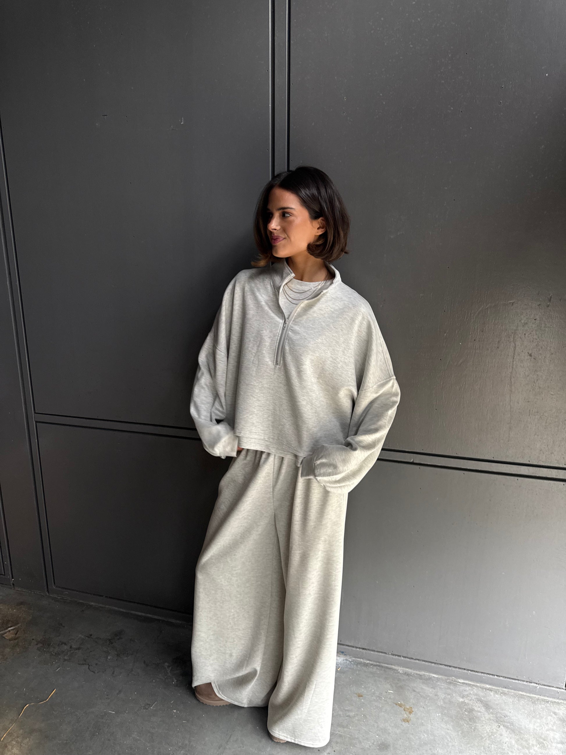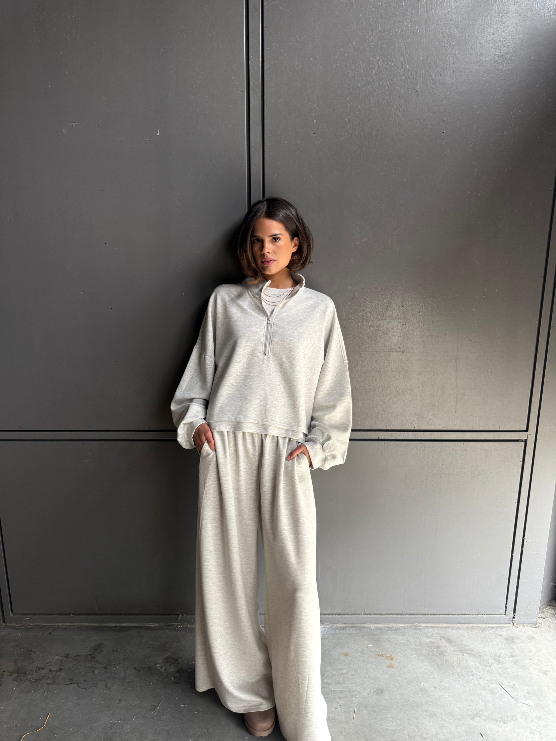 Deze grijze zipper trui is mega zacht en super comfortabel. Draag ’m open voor een relaxte look of dicht voor extra warmte, perfect met de broek.
