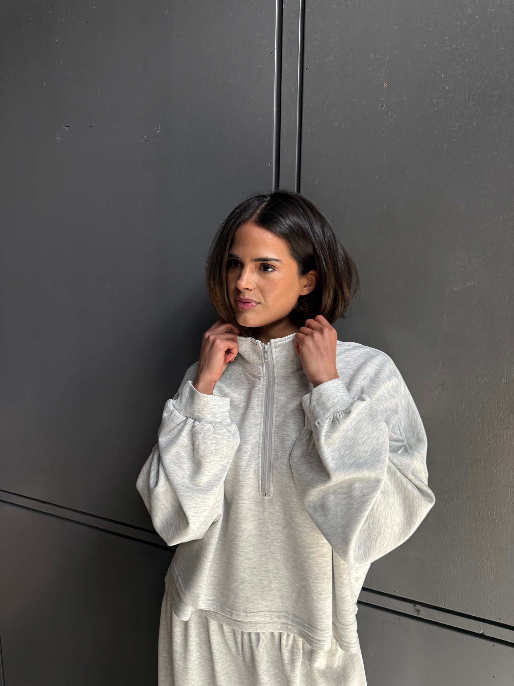 zipper trui grijs